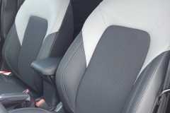Przednie fotele – z tapicerką Ray on Hannah / Vinyl z elementami skóry ekologicznej Feelteek w tonacji Space Grey, z przeszyciami w kolorze Metal Grey, styl sportowy